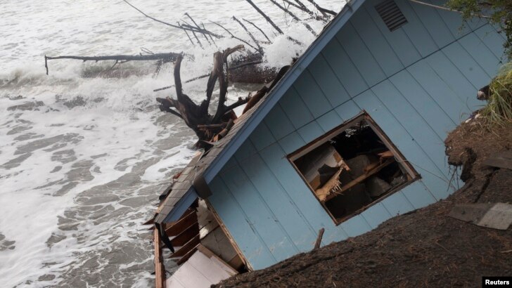 Una casa ha sido arrancada de su base en Washaway Beach, estado de Washington, luego de la tormenta que ha azotado la región.
